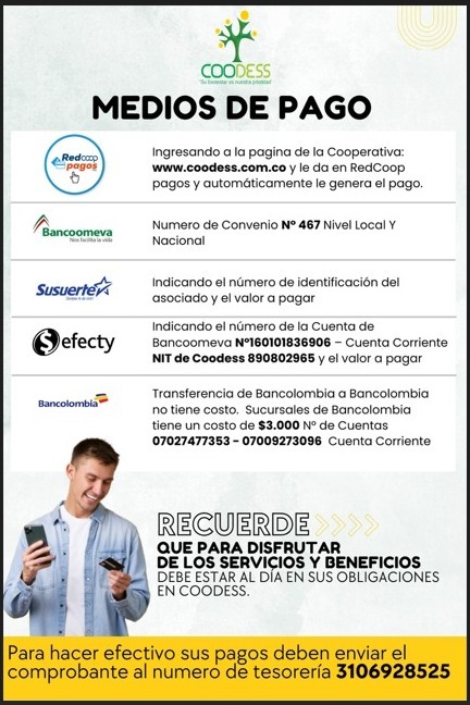 COODESS es una cooperativa de aporte y crédito, que contribuye a la satisfacción de las necesidades del asociado y su grupo familiar; con la presentación del servicio de crédito facilita el acceso a la salud, educación, recreación y bienestar, mediante la realización de convenios dentro del marco de los principios y valores de la economía solidaria.